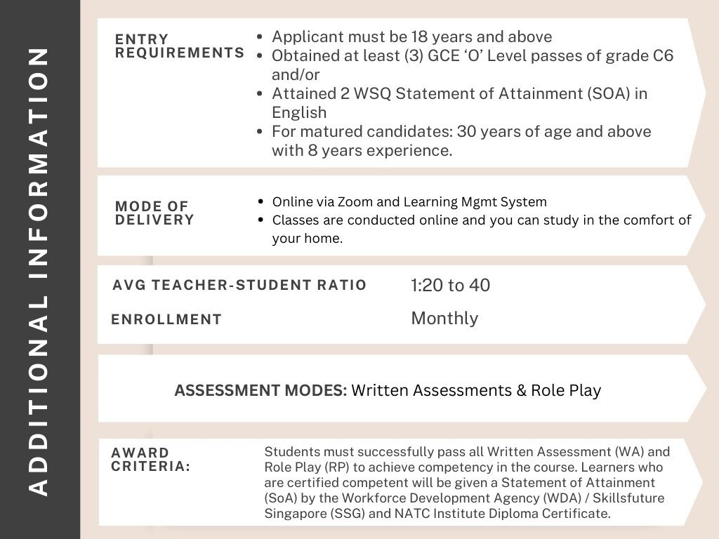 We have a team of dedicated and qualified trainers for WSQ course in Singapore offer supportive and personalized teaching for our students.